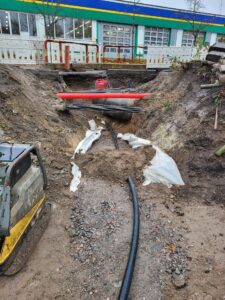 Urakka sisälsi laajat pohjatyöt sekä vesi-, viemäri- ja hulevesijärjestelmät vaativissa maaperäolosuhteissa. Työt toteutettiin suunnitelmien ja viranomaisvaatimusten mukaisesti tiiviissä yhteistyössä pääurakoitsijan kanssa.